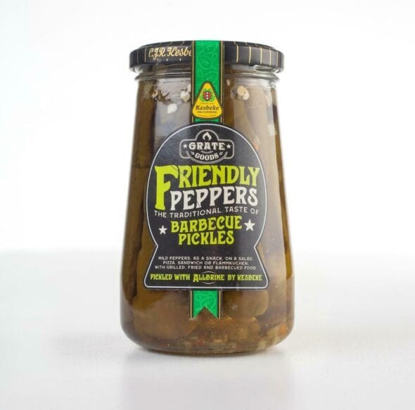 - Padronska paprika, kis, 4% začimbe AllBrine (sol, sladkor, zelena, čebula, korenček, brinove jagode, kumina, gorčica, poper, por, piment, semena komarčka, čili, lovor), sladkor, naravne arome.